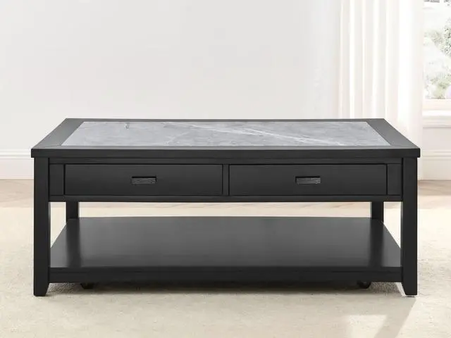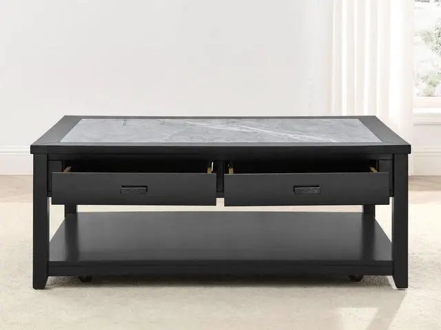 Two drawers with metal side glides add valuable storage for remotes and other items