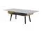 Marble Glass Top 3-D Printed Textured Top Surface Dichromatic Storage Shelf Bent Wood Solid Wood Slightly Flared Legs Black Legs Adjustable Leveling Feet