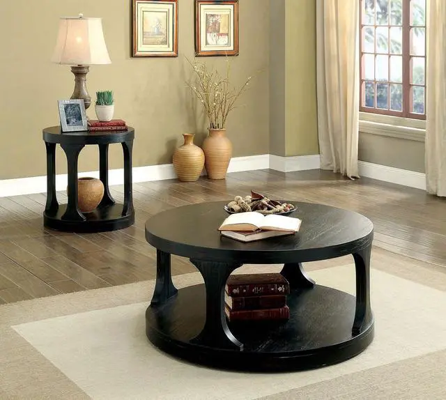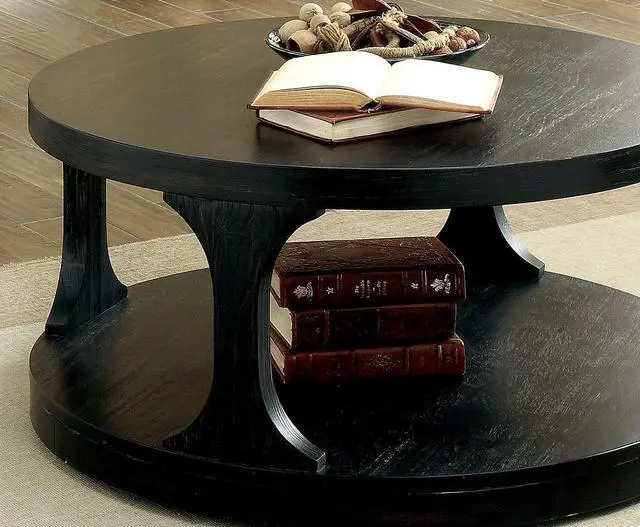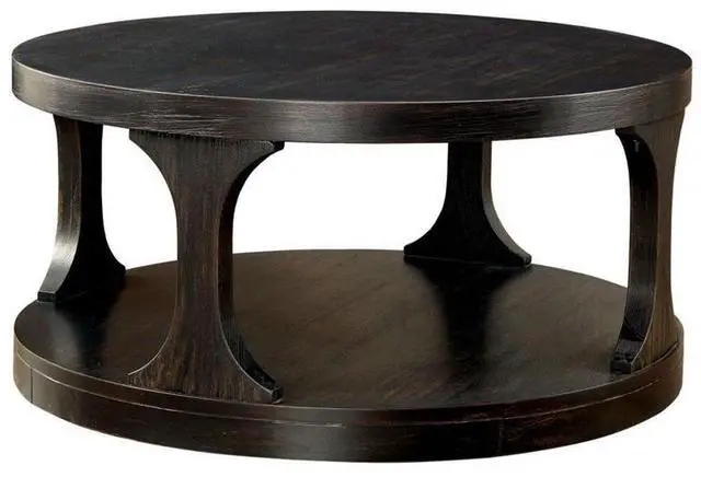 Transitional Solid Wood, Wood Veneer, Others Round Structure Antique Black Intricate Wood Grain Open Shelf Listing Include: 1pc Coffee Table Only End Table-Not Included