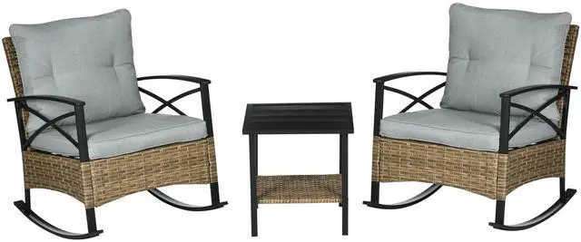 Rocking Chairs: Provide fun and functional furniture on your porch or patio. This 3-piece porch furniture set comes with two outdoor rocking chairs. Sit cozy with a friend, have a conversation, enjoy the breeze, and rock the day away.