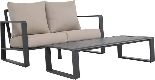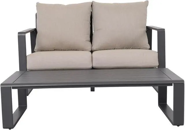 Alum. Loveseat & Coffee Table, Light Grey JM 9017