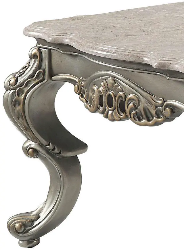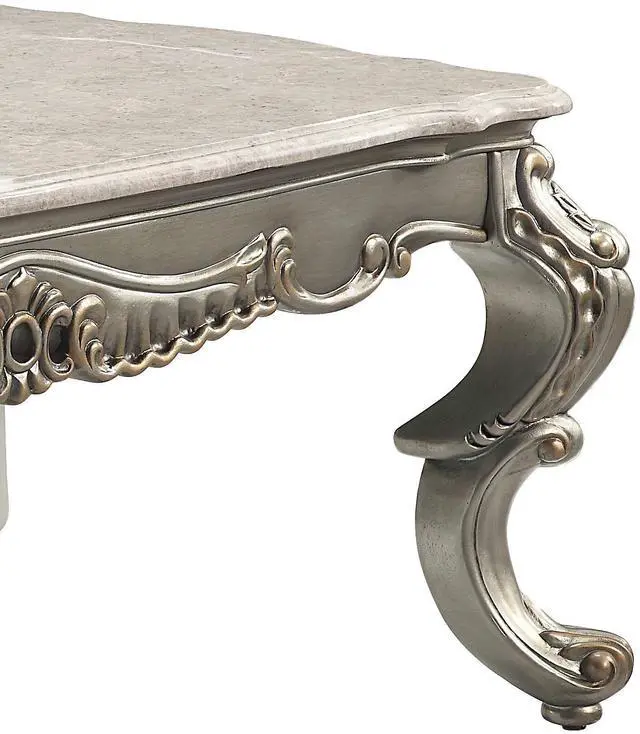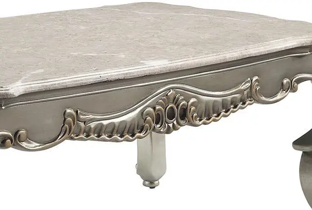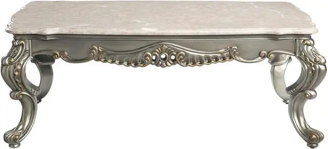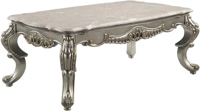 This elegant coffee table features a luxurious marble top, exuding timeless sophistication and style.