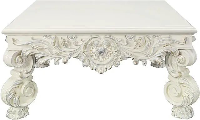 This captivating square coffee table is a stunning focal point, featuring intricate sculpture floral legs and a beautifully designed apron that adds a touch of artistic elegance to any room.