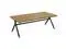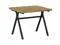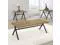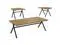 The set's metal gunmetal trestle base creates a stark contrast against the golden oak tabletops, blending modern aesthetics with rustic charm