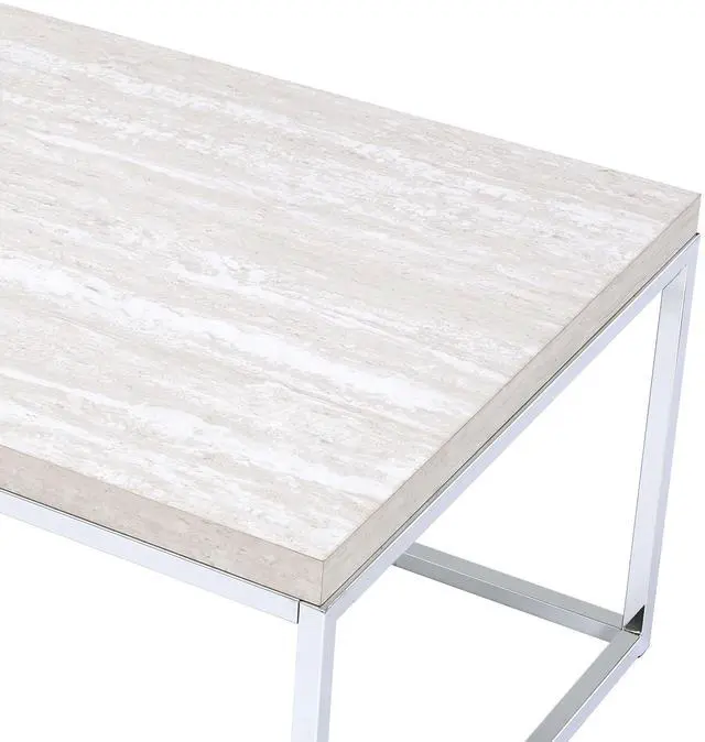 Constructed with metal tubes featuring plating, the table's base provides sturdy support and durability while adding a subtle sheen and contemporary flair to the overall design