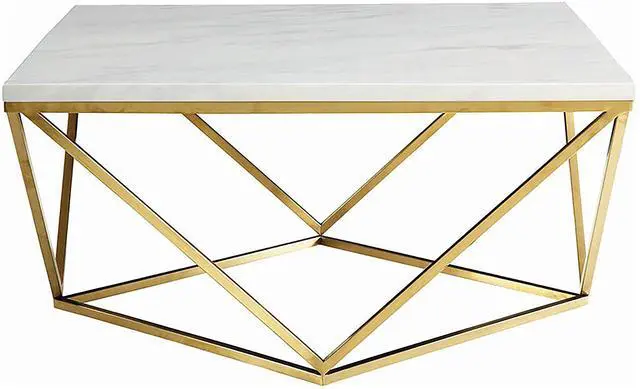 Square coffee table features a smooth white faux marble top, delivering sleek appeal and easy maintenance for everyday use