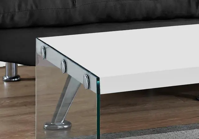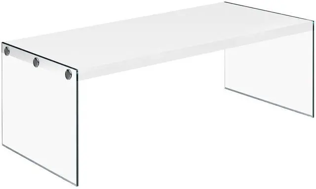 Uniquely-designed modern coffee table in white with a thick paneled glossy finish.