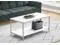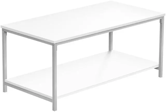 Bring flair to your living room with this cocktail table, featuring a two tier white laminate finish and a striking metal leg base.
