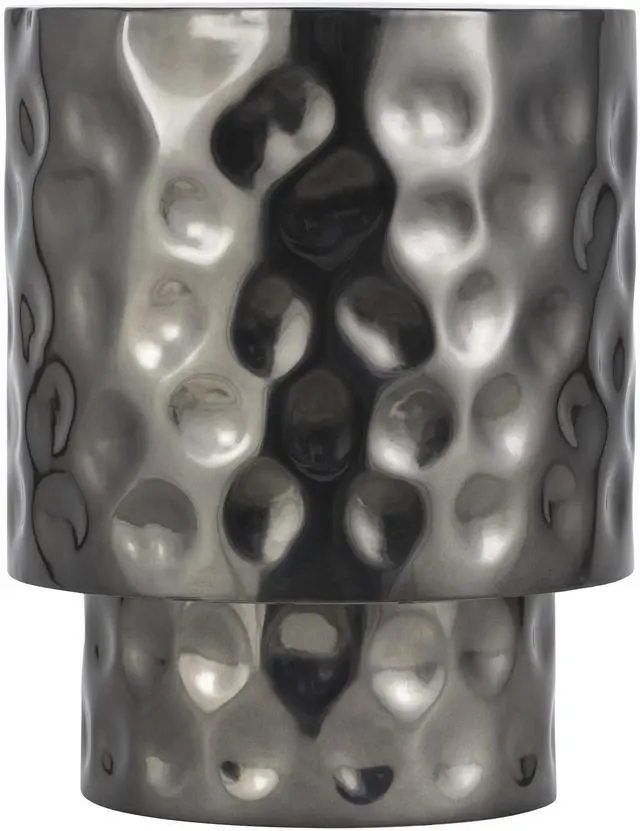 Built with strong and durable stainless steel. Hand-hammered surface for a one-of-a-kind textured look. Modern design that fits well in any room. Comes in copper, gold, or silver to match different decor styles.