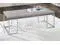Supported by a sturdy metal sled base, finished in a striking chrome, the table exudes a sense of lightness while maintaining solid stability.