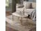 White marble top Gold metal legs Assembly required Do not place hot items directly on the tabletop Use coasters, placemats or trivets to help prevent marks or stains