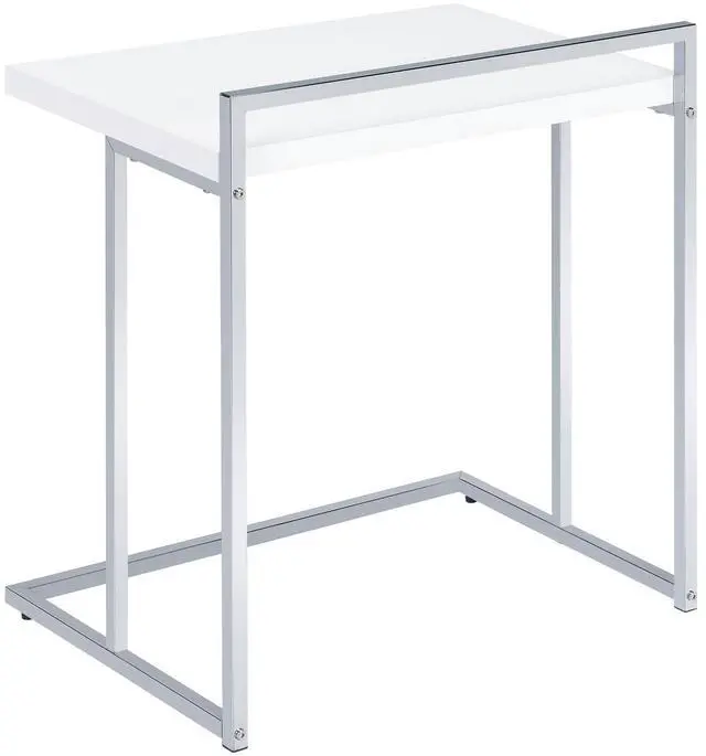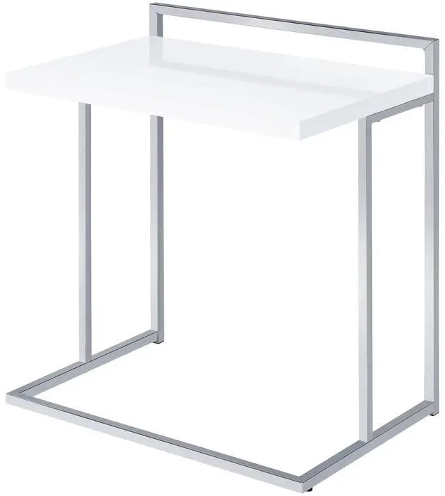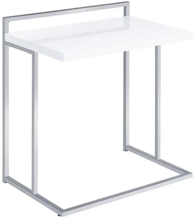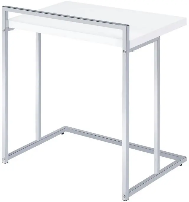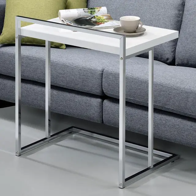 The snack table features an open and airy base, providing a modern and stylish touch that adds visual appeal to any room setting