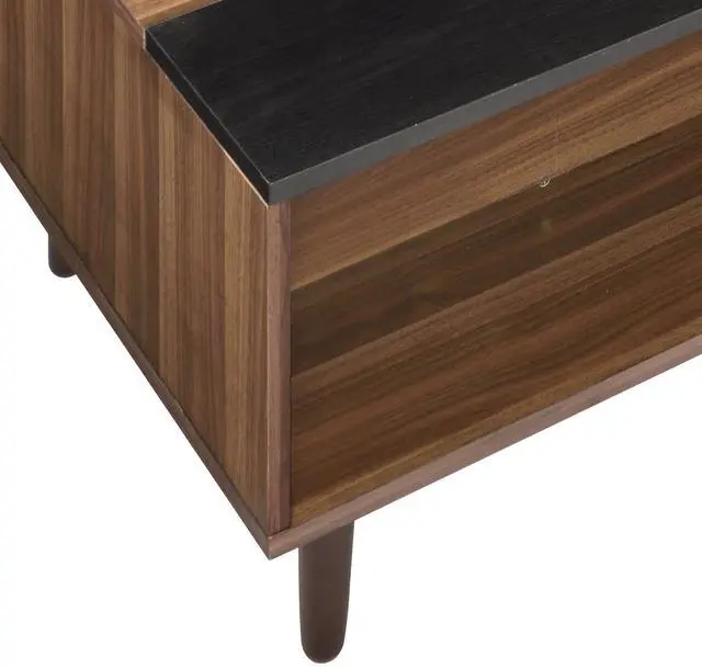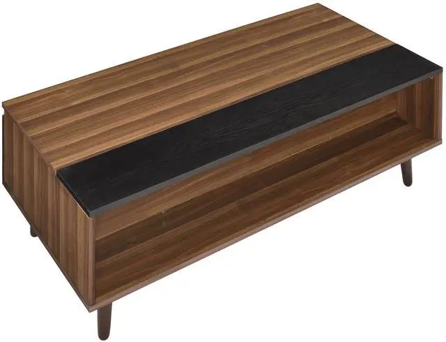 The coffee table's wooden tapered legs not only provide sturdy support but also add an elegant touch to its design, enhancing the overall aesthetics