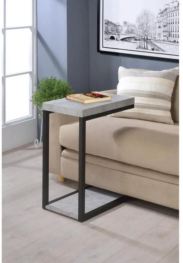 With bold angles and industrial hues, this table serves as a striking and functional addition, perfectly suited for use alongside a sofa or chair in a modern living area
