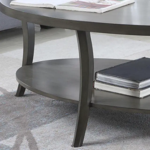 Chic gray finish fits into any of your room decor. Matching end table available in the "Perth" collection