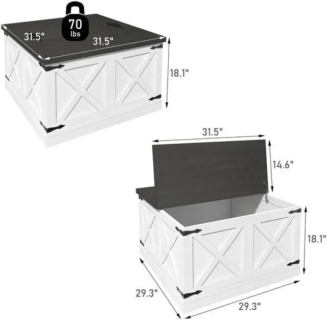 Large Hidden Storage: Lift-up lids reveal spacious compartments for blankets, games, toys. Maximizes living space & tidiness ( 31.5" x 31.5" x18").