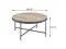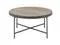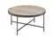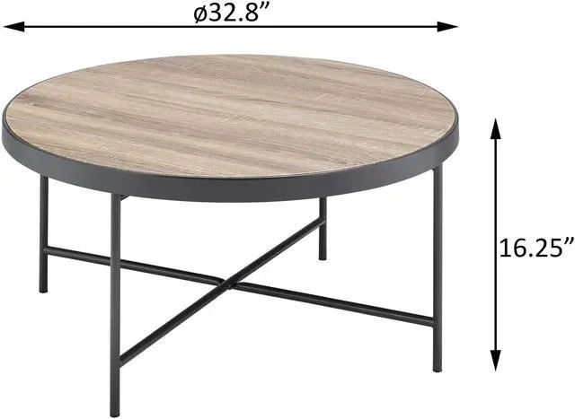 Industrial-style coffee table with a round wooden top and metal trim for a unique aesthetic