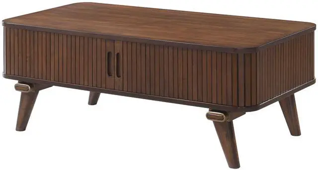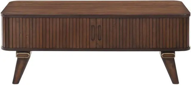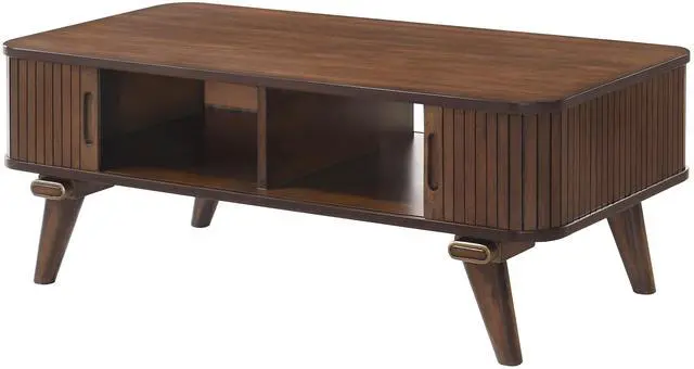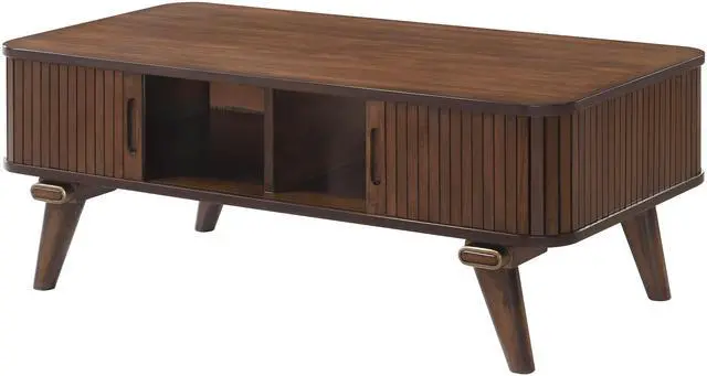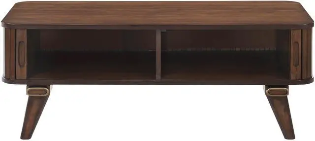 1pc Storage Cocktail Table Walnut Finish Tambour Doors 2x Shelves Modern Living Room Furniture