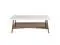 Solid wood frame MDF top MDF with solid wood veneer shelf Lower shelf for storage Two tone contrast Assembly required, tools included Do not place hot items directly on the tabletop Use coasters, placemats or trivets to help prevent marks or stains