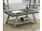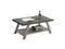 Coffee table with a weathered walnut finish on table top and light gray finish on the base