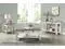 Made of oak and rubberwood veneer, wood and engineered wood 2-tone finish: Rosy brown and antique white 2 dovetail drawers with ball bearing glides Lower shelf Flat black tone knobs Casters for easy movement