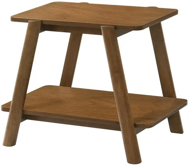 This end table features a unique and captivating design. Its smooth sculptural lines and natural wood grain accents make it a standout addition to any room. Whether used as a side table or nightstand, the rich walnut finish adds further charm, making it a perfect focal point for any room.