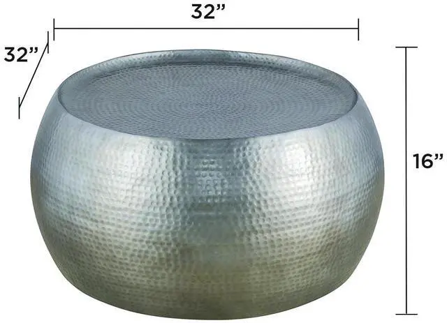 CT501 Modern Contemporary Round Aluminum material 32" Coffee Table, Farmhouse Table with Glossy Hand Hammered Design Antique Silver same as B009P298416 (CA inventory)