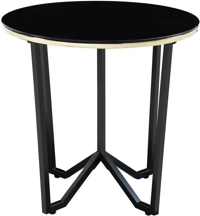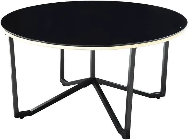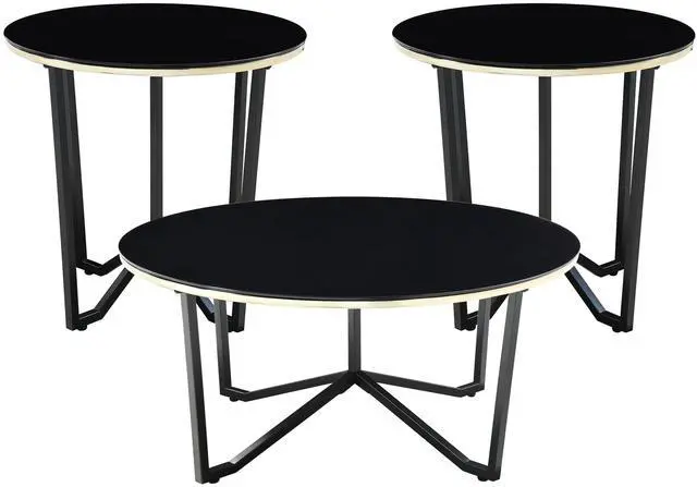 Round Coffee Table and End Tables 3pc Set Black Tempered Glass Top Metal Frame Modern Living Room Furniture