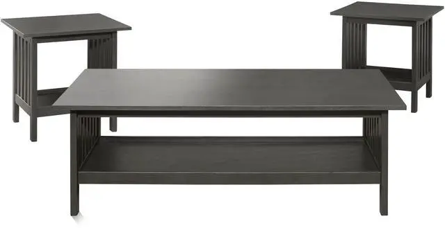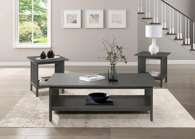 Country of Origin: Malaysia Made of rubberwood veneer, wood and engineered wood Antique gray finish 1 Coffee Table and 2 End Tables Each Piece with 1 Shelf