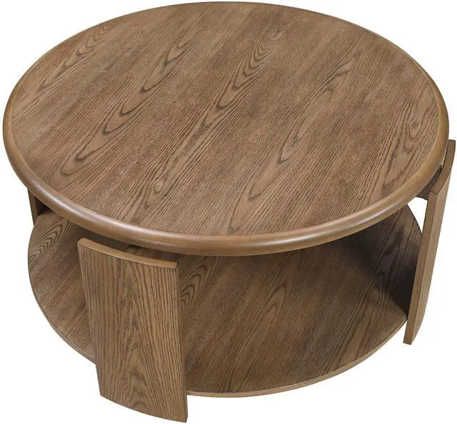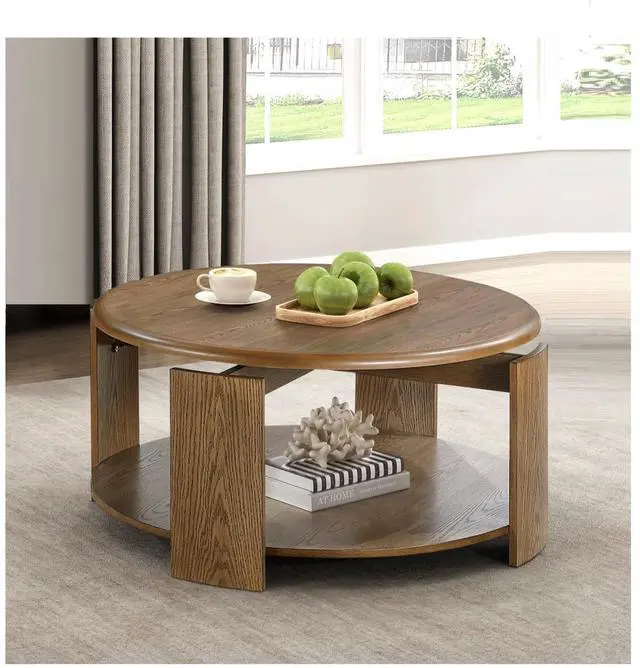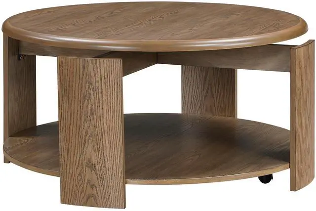 Brown Finish Cocktail Table with Swivel Top Open Shelf Caster Movement Living Room Furniture 1pc Round Coffee Table