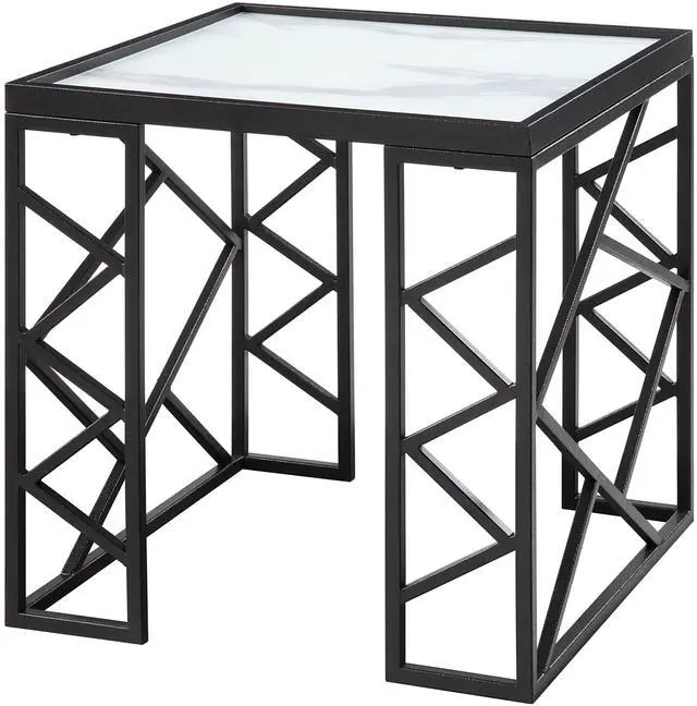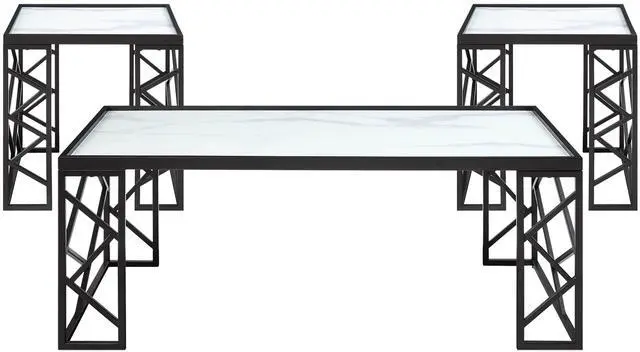 Occasional 3pc Tables Set Tempered Glass Top Coffee Table and End Tables Black Metal Frame Living Room Furniture