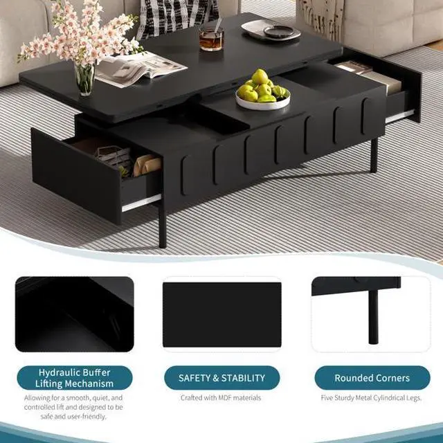 Upgrade your home with this multifunctional folding adjustable coffee table, and experience a new standard of living that harmonizes sophisticated aesthetics with everyday convenience! Whether youre savoring a quiet morning coffee, setting up an efficient home office, or hosting a festive dinner party, this versatile coffee table adapts effortlessly to any occasion. And also with its thoughtful features---hidden storage and two spacious drawers, it brings practicality to any home, making it a must-have for those who appreciate fine design and multifunctionality.