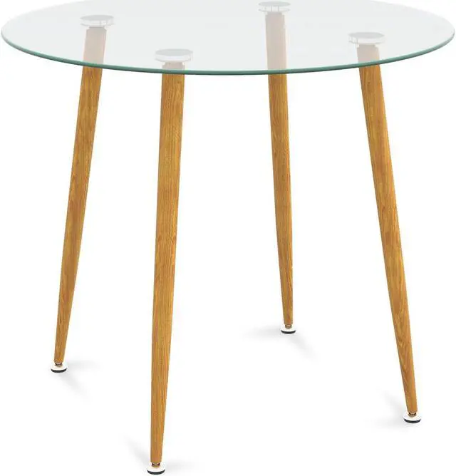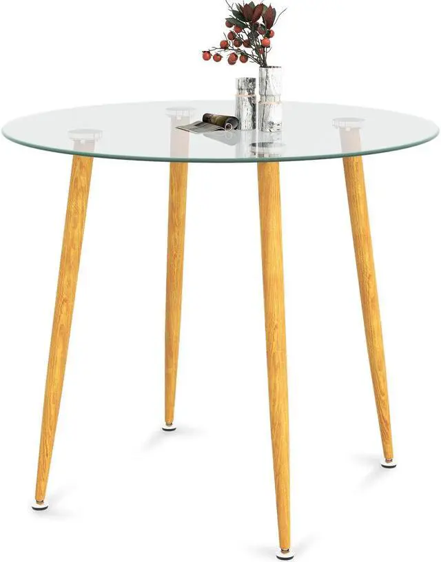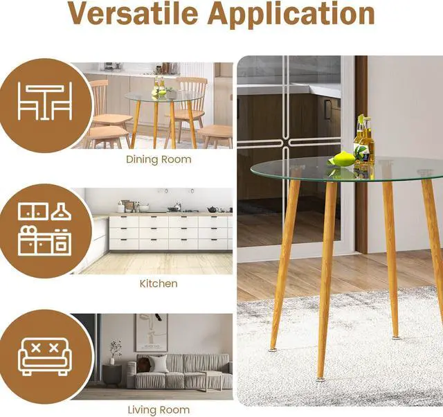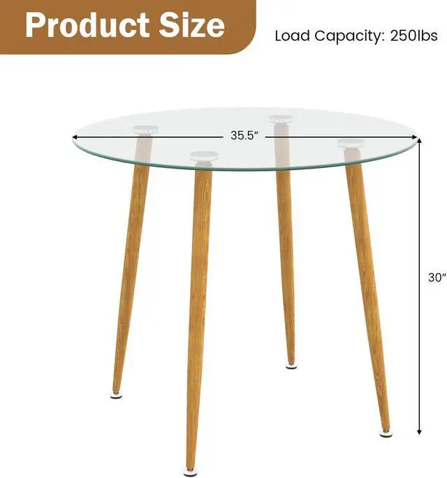 Safe Tempered Glass Tabletop: The dining table contains a round tabletop made of 0.3" thick tempered glass, which is wear resistant and scratch resistant to maintain a look like new. Also, the anti-fragile glass table is waterproof and features sleek edges, making cleaning much easier and quicker.