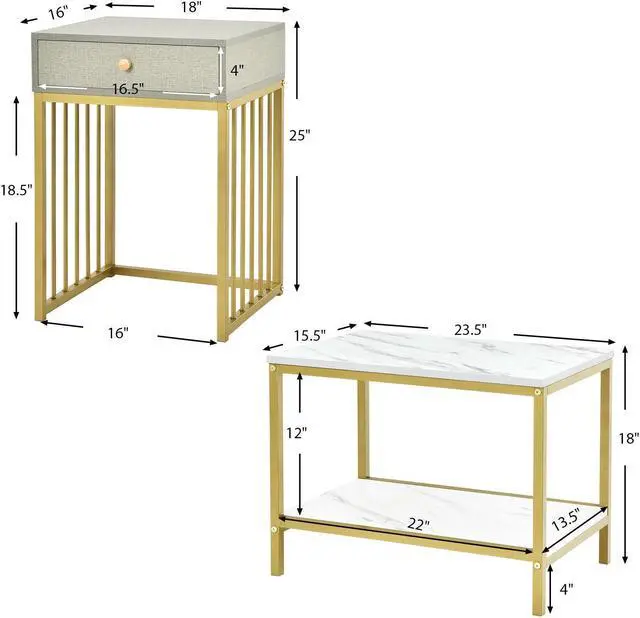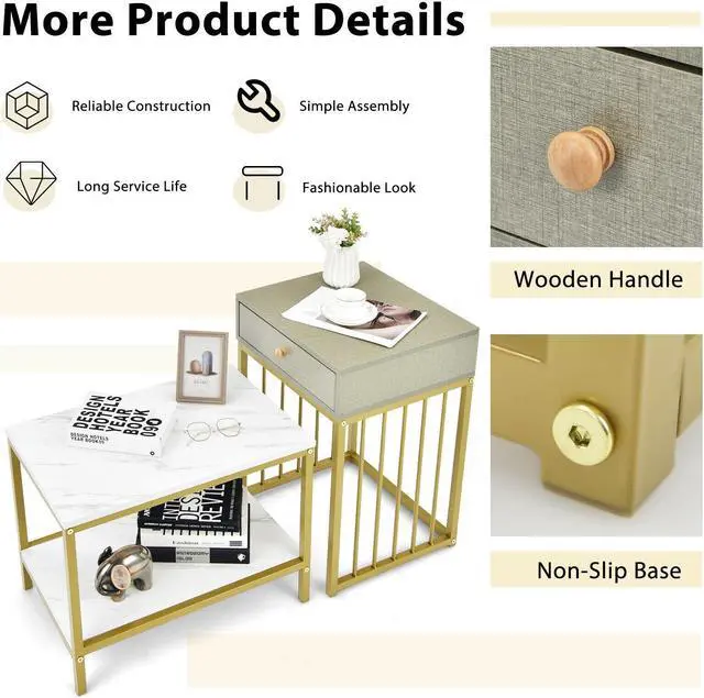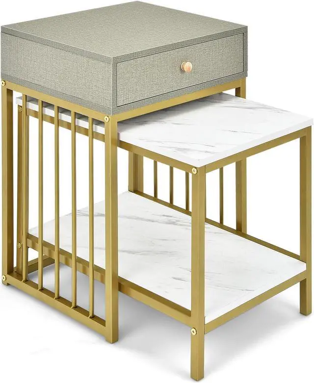 Contemporary Design: The 2-in-1 accent table set is designed in a chic and luxurious style. The linen-like surface looks understated and elegant, while the white faux marble tabletop attracts your eyes with a sophisticated charm. The ingenious combination of these 2 textures makes the set a perfect decorative piece.