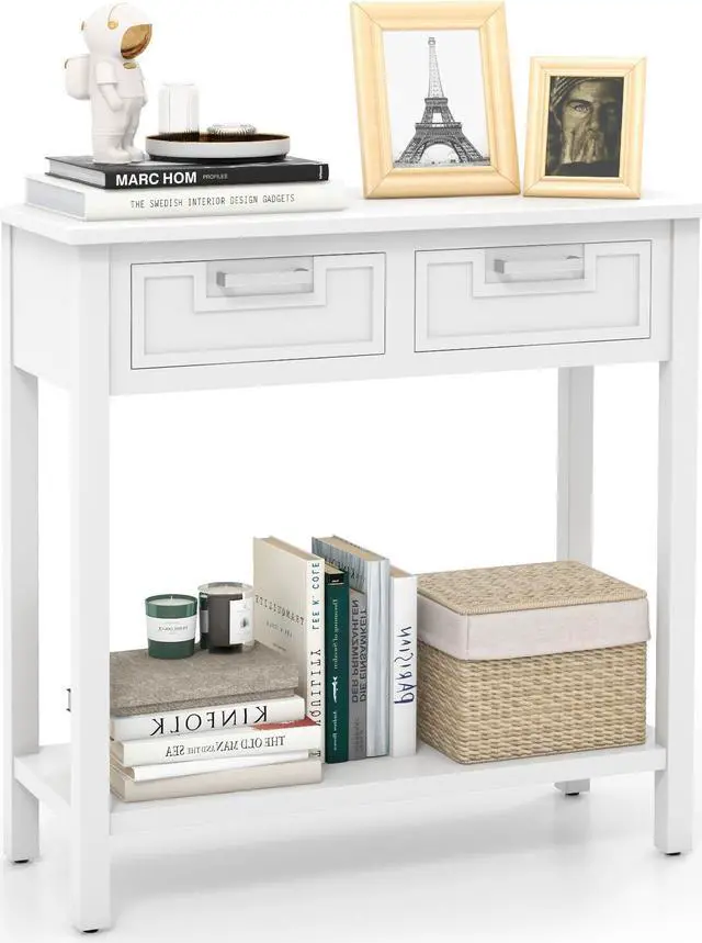 Narrow Console Table with Storage: The 31.5"L x 14"W x 32"H console table fits limited room yet to bring ample storage space. It features a spacious tabletop, 2 pull-out drawers and a bottom storage shelf to meet storage or display needs.