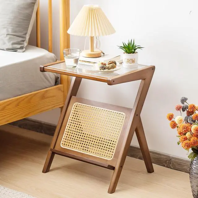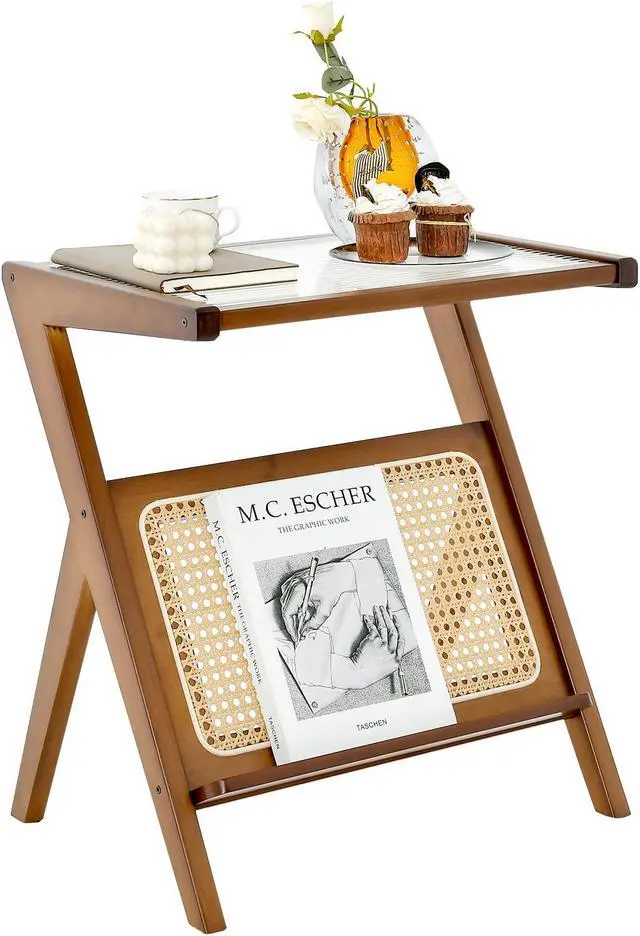 Sturdy and Durable Construction: Constructed with a tempered glass tabletop and a Z-shaped high-strength bamboo frame, this end table is built to withstand everyday use and provide a stable surface for your items.