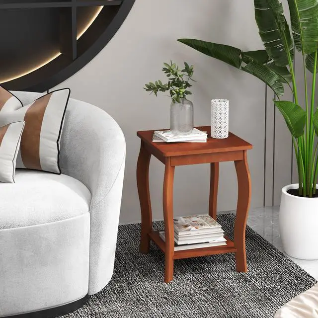 Aesthetically Pleasing Piece: Elegantly curved legs and classic walnut glossy finish showcase exquisite workmanship, which will bring rustic sentiment to your living area. Moreover, the end table is a charming complement to the living room, bedroom and office, etc.