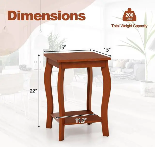 Fit in Small Spaces: Overall Dimension: 15" x 15" x 22" (L x W x H). The narrow side table takes up little space and makes it a perfect solution for small spaces due to its compact design. This end table can also work as a nightstand, sofa side table or display rack.