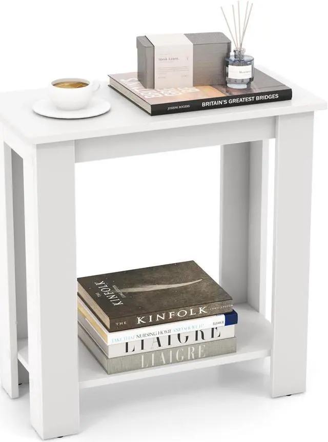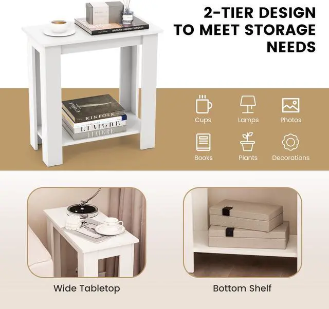 2-Tier Design to Enlarge Storage: The end table features a wide tabletop and bottom shelf to enlarge storage capacity and display space for plants, books, photos, cups, lamps and decorations. In addition, any daily items placed on the sofa table can be easily accessible.