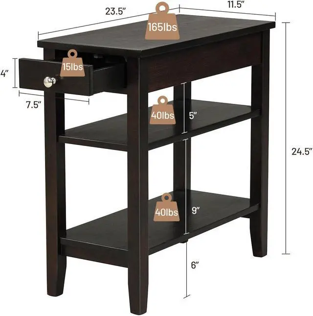 Compact Design for Space-efficiency: The compact design makes it ideal for narrow space whether between the sofa, beside the chair or the edge of bed. Without taking up too much space, this end table maximizes the space utilization and contributes to interior improvement of your home.