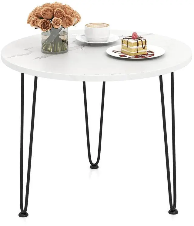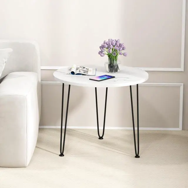 Elegant Faux Marble Top: Enhance your living space with this stylish small round coffee table that boasts a high-quality faux marble top. Its sleek surface is also easy to clean, making it practical for daily use.