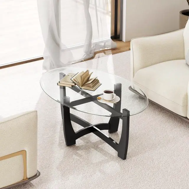 Open X-Shaped Base: Featuring an X-shaped base, the cocktail table ensures strong support for whatever your day brings and facilitates easy sweeping underneath. The adjustable foot pads also provide great stability even on the uneven floor.