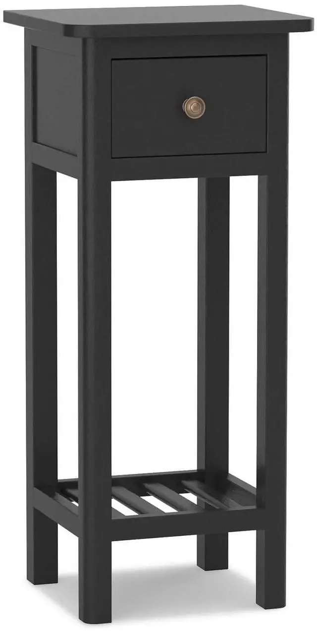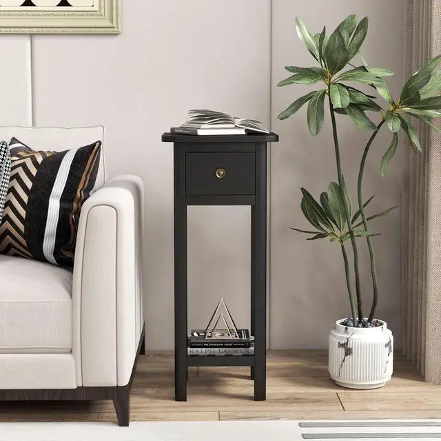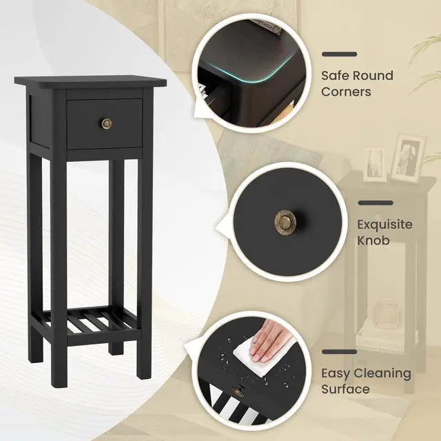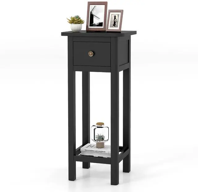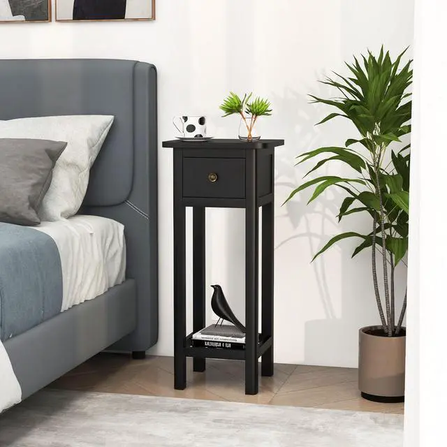 SlickBlue 2 Tier Slim Nightstand Bedside Table with Drawer Shelf-Black