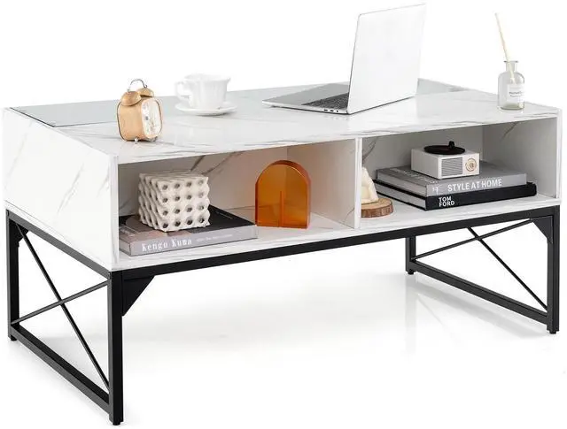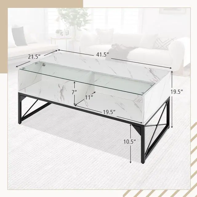 Versatile Use: Combining style and function, this faux marble coffee table can serve as a centerpiece in living rooms, entertainment areas, or even as a focal point in a lobby or lounge.