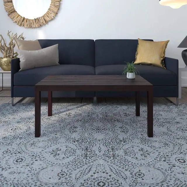 The Coffee Table ships flat to your door and requires minimal assembly upon opening. Simply attach the 4 legs to begin using. The table top can hold up to 50 lbs.