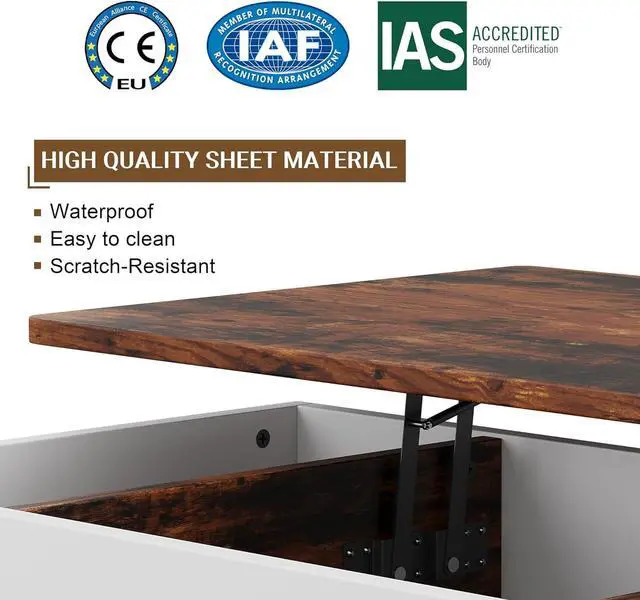 Upgraded Lift Mechanism: With Hydraulic lifter, the lift top coffee table ensures that it moves smoothly and quietly. Foam bumpers under the tabletop will help to avoid noise and pinching.