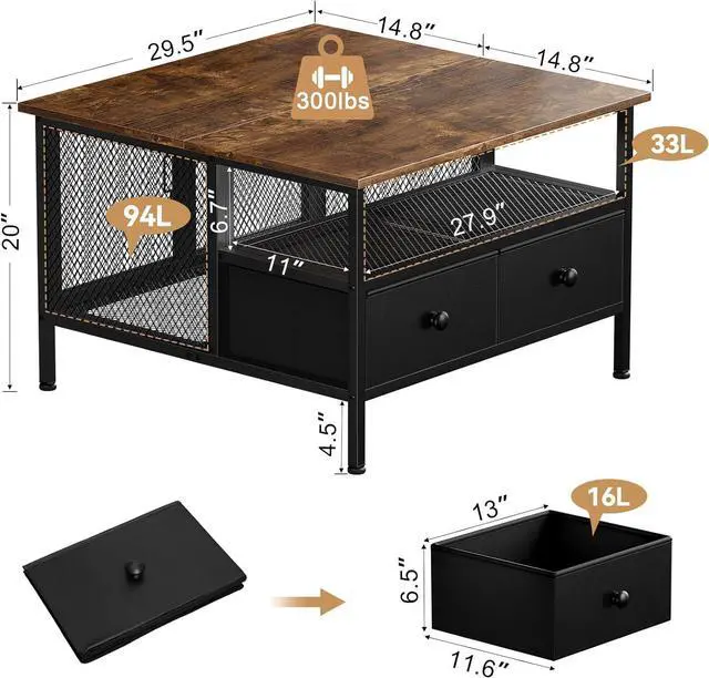 Sturdy Structure: Square coffee table for living room is made of metal frame leg, iron mesh and MDF board tabletop, can hold up to 300 pounds. The storage open door magnetic catch makes the center table more easier to open and store larger items, underneath space is easy to clean