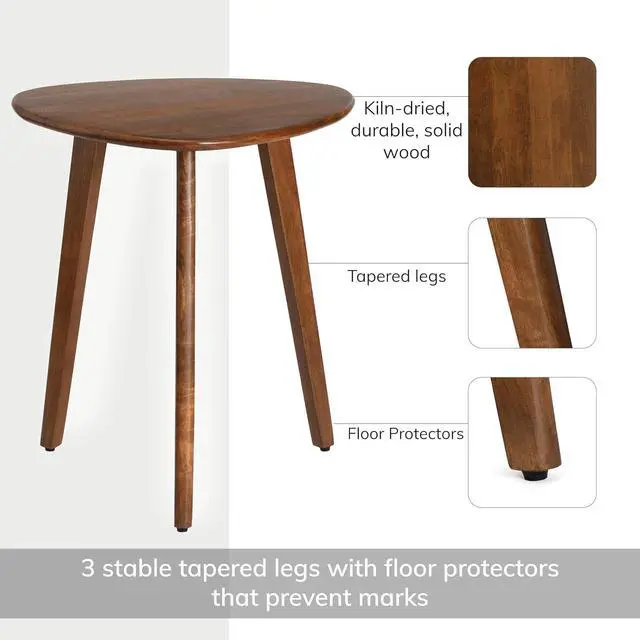MADE FROM KILN-DRIED SOLID WOOD. This end table is made from solid mango wood, which is beautiful, lightweight, and durable; Its water resistant lacquer also makes it a safe place to place your beverages, or to use outdoors