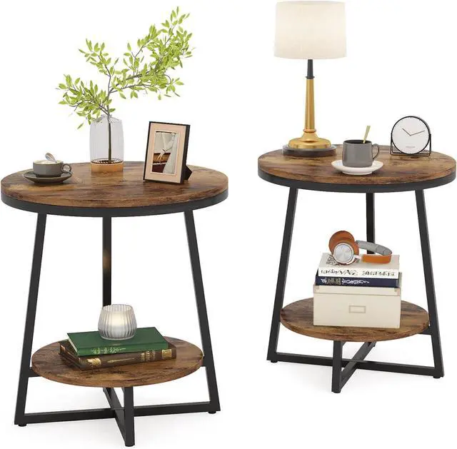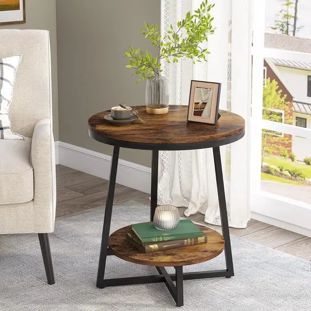 2-Tier Round Accent Table: The enlarged table ( 19.68 " ) provides more space for display. Place drinks and coasters on the top tier, then use the bottom for spare magazines or an organizational basket. Rounded edge design can prevent potential damage. 2 tier open shelf design for easy access and storage.