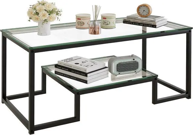 UNIQUE & ELEGANTThe Rectangular coffee table with modern design, clear solid glass top with gold/black metal frame, adding a touch of beauty to your living room or office.